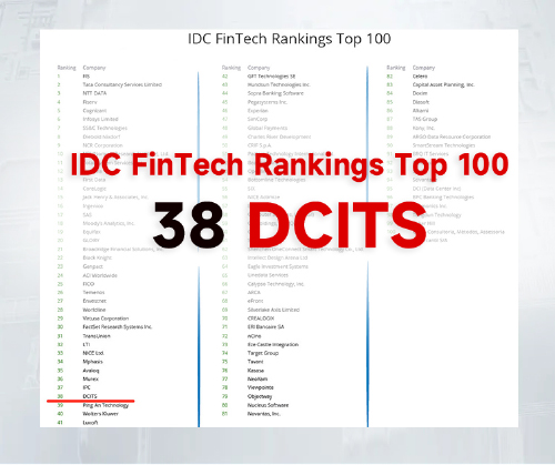DCITS ranked 38th globally in the lDC Global FinTech Rankings, and secured the top position among Chinese companies on the list.