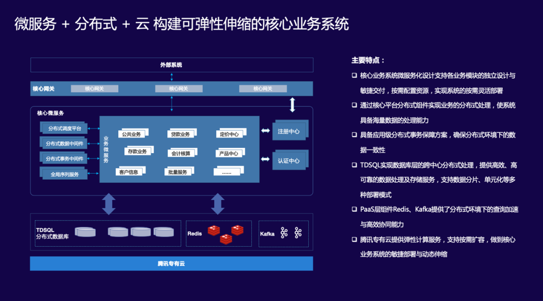 6月24日,基于國內(nèi)銀行對以云為承載的全棧國產(chǎn)化IT系統(tǒng)的需求,騰訊云攜手神州信息正式推出了“金融分布式核心”聯(lián)合解決方案。雙方采用開放平臺技術(shù)——核心平臺+云平臺實現(xiàn)業(yè)務(wù)的分布式處理、敏捷部署和動態(tài)伸縮,同時推動國產(chǎn)數(shù)據(jù)庫的金融全場景落地。在幫助銀行核心上云的同時,更利用核心系統(tǒng)云原生特性,滿足多地多中心、跨區(qū)容災(zāi)、HTAP等先進性要求,實現(xiàn)銀行核心業(yè)務(wù)系統(tǒng)的安全可控。