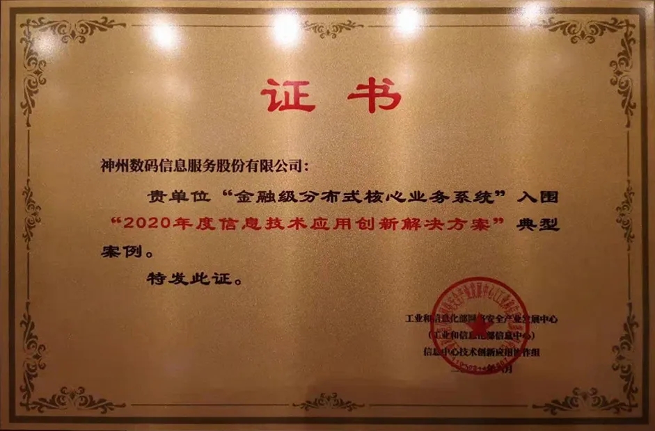 6月25日,由工業和信息化部網絡安全產業發展中心(工業和信息化部信息中心)、福建省數字福建建設領導小組辦公室、廈門市人民政府、信息中心技術創新應用協作組聯合主辦,廈門市工業和信息化局承辦的2021年信息技術應用創新產業發展高峰論壇暨2020年信息技術應用創新典型解決方案發布會在廈門市成功舉辦,神州信息金融級分布式核心系統憑借技術先進性和產品優異性,成功從143家報送企業的268個案例中脫穎而出,入選“2020年度信息技術應用創新解決方案”。