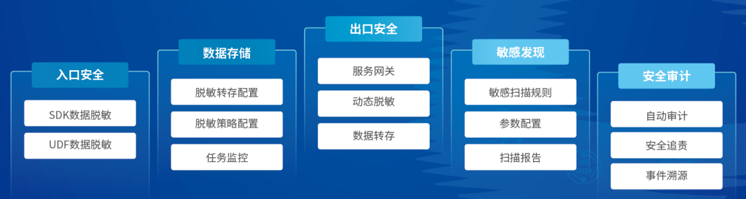 產(chǎn)品核心功能包括入口安全、數(shù)據(jù)轉(zhuǎn)存、出口安全、敏感發(fā)現(xiàn)和安全審計(jì)等。