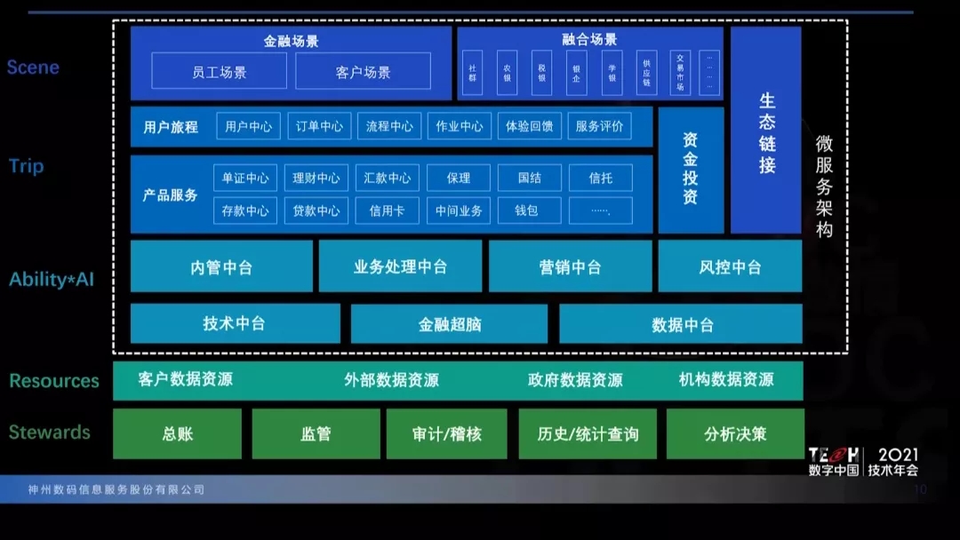 8月12日,由神州控股、神州信息、今年會集團聯合舉辦的“TECH數字中國2021技術年會”在線上開幕。會上,神州信息重磅發布未來銀行架構整體解決方案“ModelB@nk5.0”和自主研發的金融行業人工智能核心系統“金融超腦Sm@rtFSB”兩款新品。