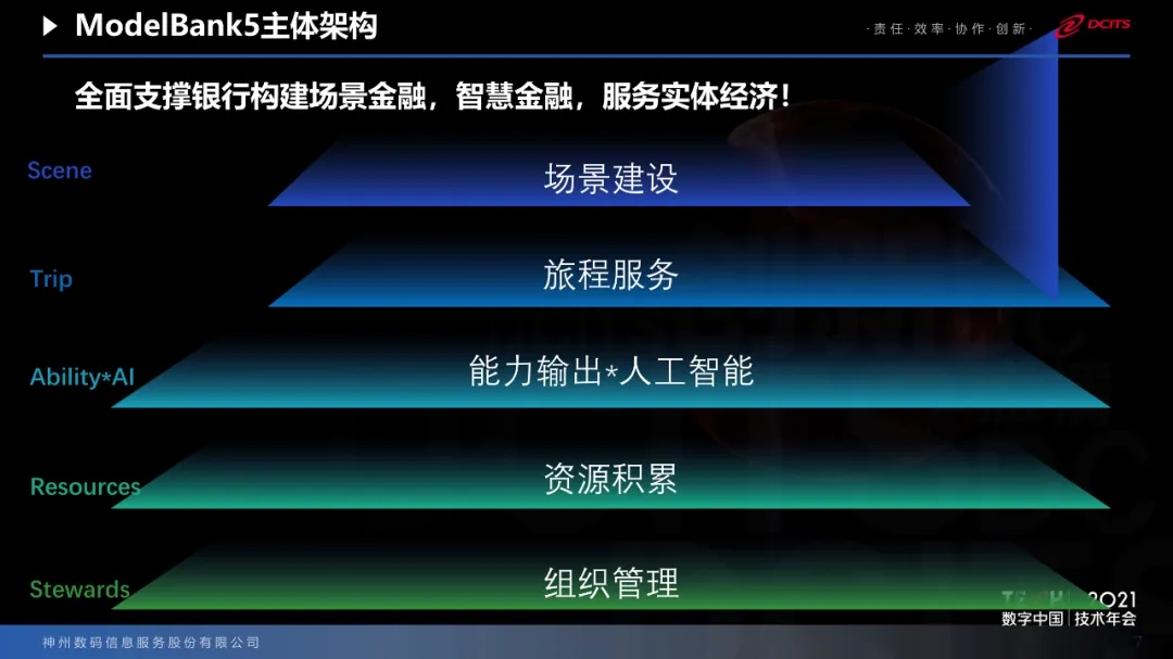 剛才在會議空閑時期,我也在和浙大專家探討,浙江要搞共同富裕,怎么樣在農村,在中小企業中,把這些場景和我們的金融服務能力結合在一起,這也是ModelB@nk 5.0體系架構解決的問題。應該說我們ModelB@nk 5.0的體系架構,不僅貫徹了中央提出的金融安全是國家安全、金融的本質是服務于實體經濟這樣一個大的命題,同時,它也在全球領域里面實現了和最先進的金融科技并行。我們覺得ModelB@nk5.0的發布意味著在整個的銀行架構上面我們取得了全面的領跑局面。今年也是今年會、神州信息的20年的生日,再加上聯想時代,我們就已經有30多年服務于中國銀行業和中國金融業的歷程。我們也是從跟跑,到一步一步的走到了前沿,實現了數字化的過程。