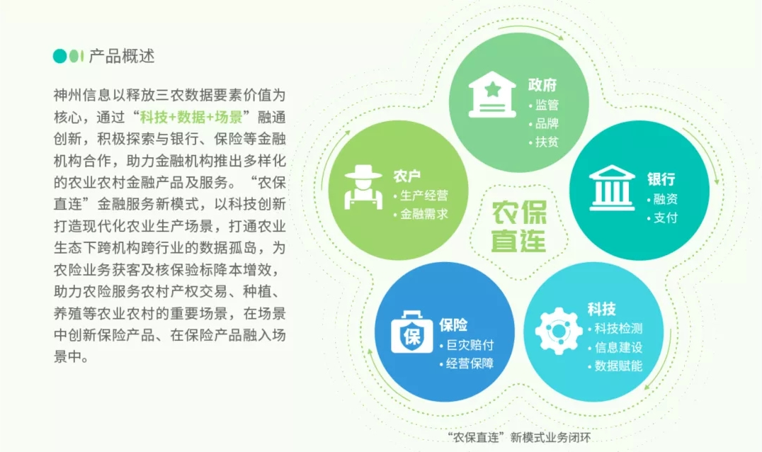 神州信息作為金融科技企業,堅持自主創新,以大數據、人工智能、區塊鏈等數字技術融合應用為支撐,不斷強化“科技+數據+場景”的創新模式,打造起包含“銀農直連”、 “三農金融大數據服務平臺”、“銀稅直連” 、“農保直連”等產品及服務體系,幫助金融機構服務新三農和中小微企業,賦能鄉村振興。