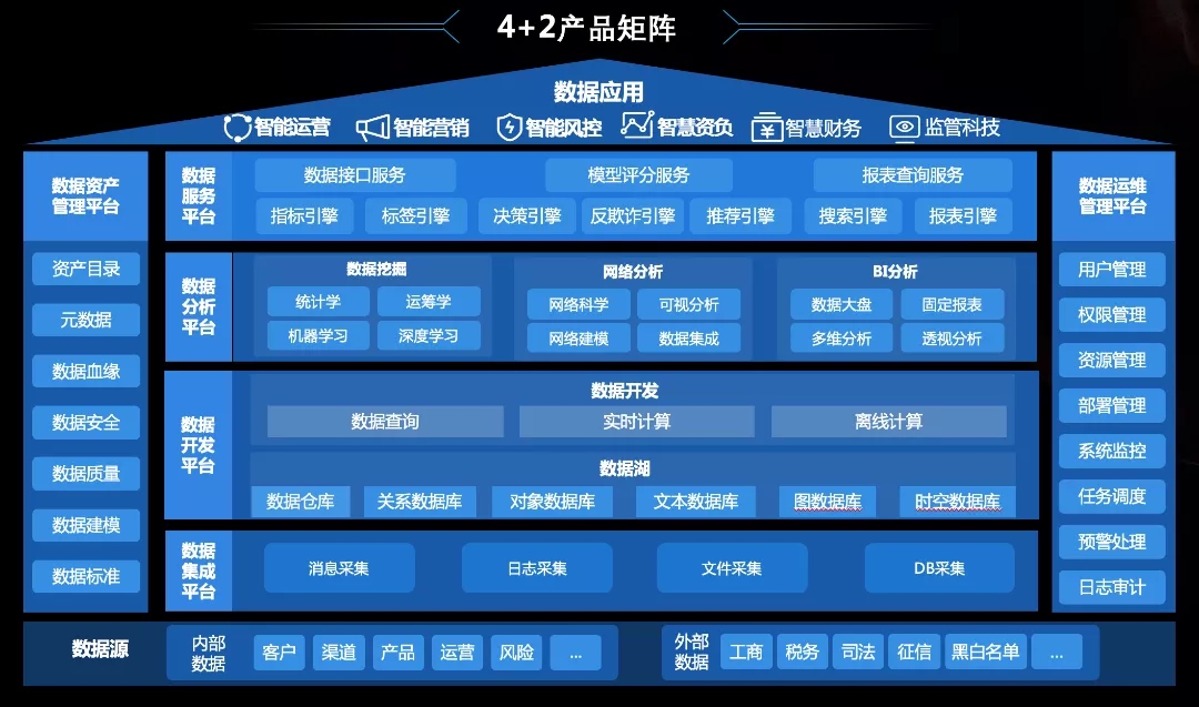 神州信息數據中臺作為一站式數據服務平臺,圍繞數據的“采、存、建、用、管”全生命周期流程,包含數據管理體系、數據開發體系和數據運維體系產品。能夠實現數據標準化、智能化、資產化、服務化,快速滿足多樣性的業務需求,助力金融機構釋放數據價值,加速數字化轉型。