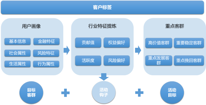 洞察客戶的興趣愛好、行為特征、金融屬性等指標,挖掘客戶在細分場域的需求,提高業(yè)務服務的相關(guān)性、關(guān)聯(lián)性,可持續(xù)性的提升客戶粘性、培養(yǎng)使用習慣,真正實現(xiàn)以客戶為中心。