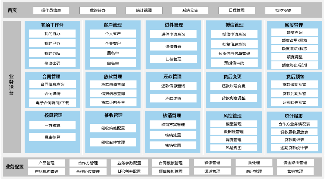 基于互聯網、大數據、人工智能等信息技術,充分考慮法律法規及監管要求,以及未來改革發展的前瞻性需求,神州信息新一代智能線上貸款系統,以線上化、自動化、智能化、合規化為總體建設目標,組建覆蓋獲客、在線申請、自動授信、自助提款、智能貸后等授信全生命周期的功能體系,滿足金融機構線上業務開展、風險自主控制、賬務核算管理和運營管理需要。