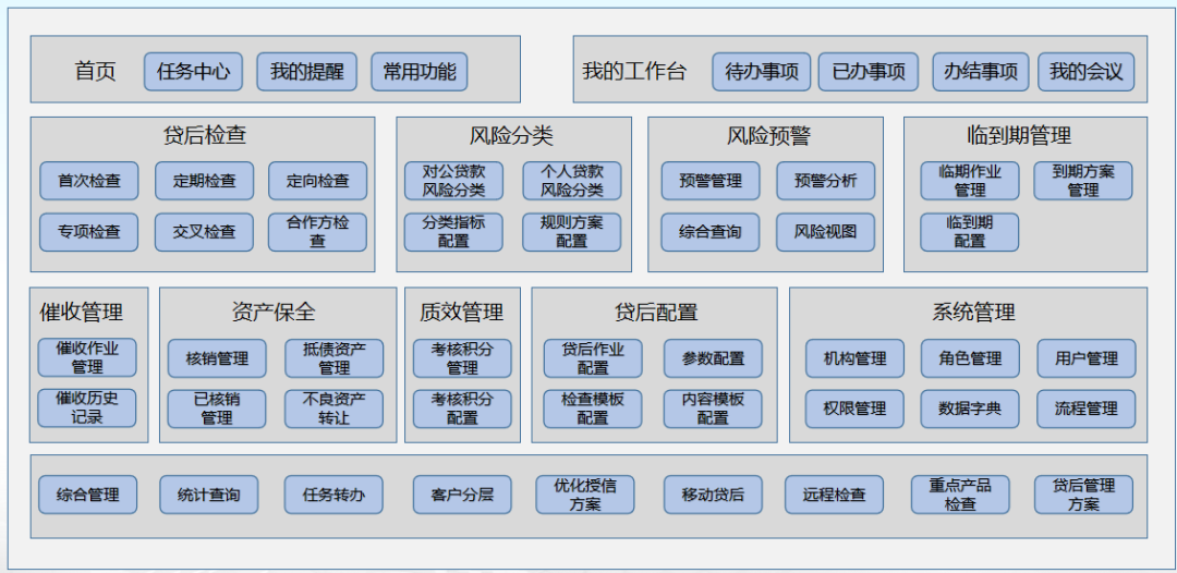 以各環節及全流程閉環管理為抓手,支持對信貸政策、授信審查、批復執行的復盤分析,不斷完善貸后各環節小閉環,并形成授信管理全流程大閉環。