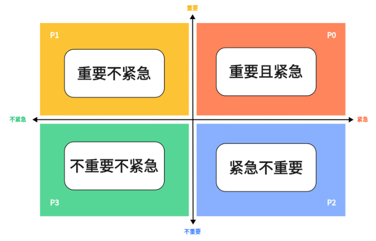 四象限法是由美國管理學家科維提出的一種時間管理理論,是專門對時間進行管理的方法。四象限法把事情按照“重要性”和“緊急性”兩個標準來進行排序,以重要性為豎坐標軸,以緊急性為橫坐標軸,形成四個象限。