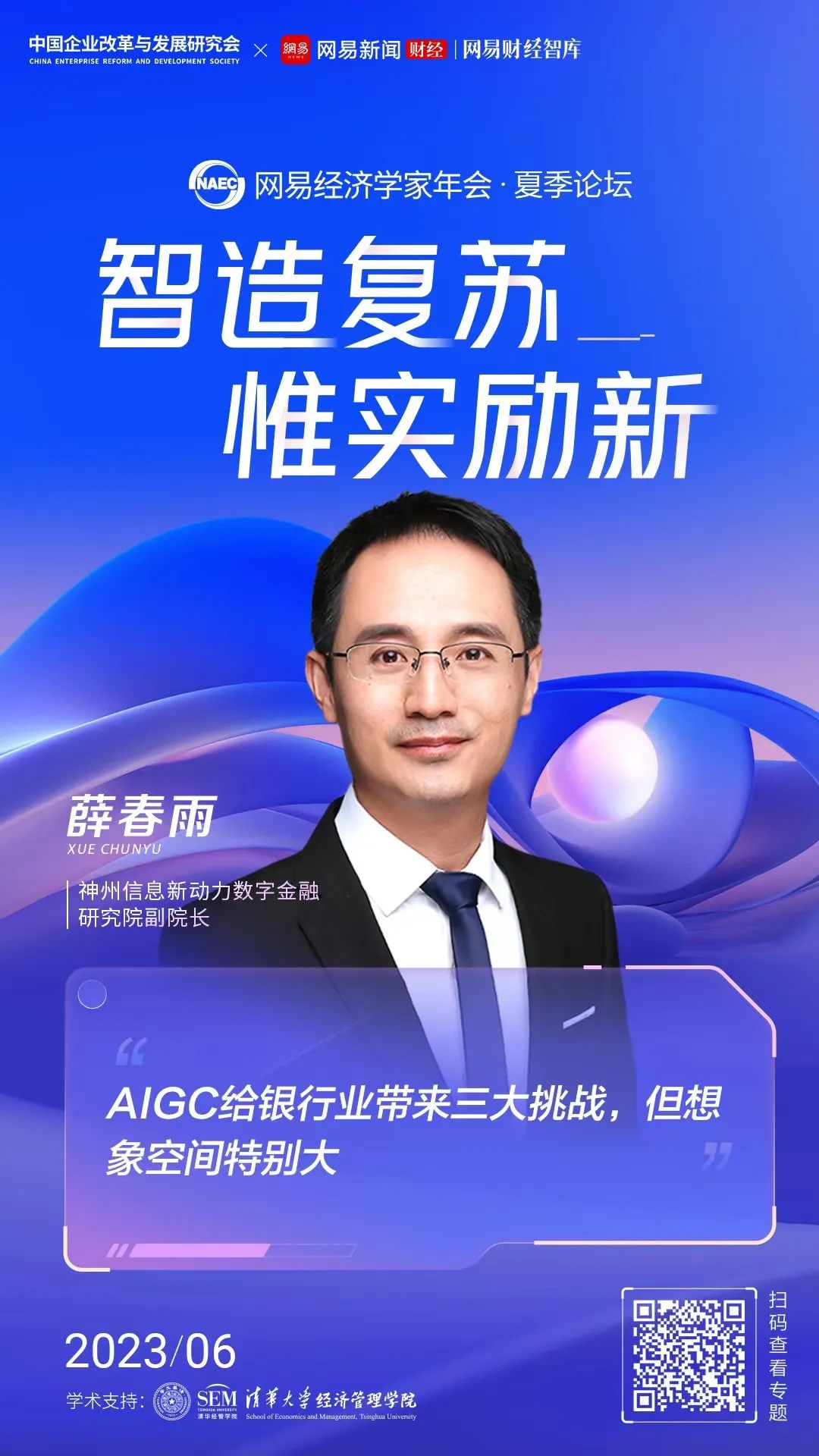 由中國企業改革與發展研究會、網易財經、網易財經智庫聯合主辦的2023網易經濟學家年會夏季論壇于6月19日在上海舉行,本屆論壇的主題是《智造復蘇 惟實勵新》,清華大學經濟管理學院提供學術支持。神州信息新動力數字金融研究院副院長薛春雨參與了以“被ChatGPT帶飛的AIGC”為主題的圓桌討論,給出了他的真知灼見。