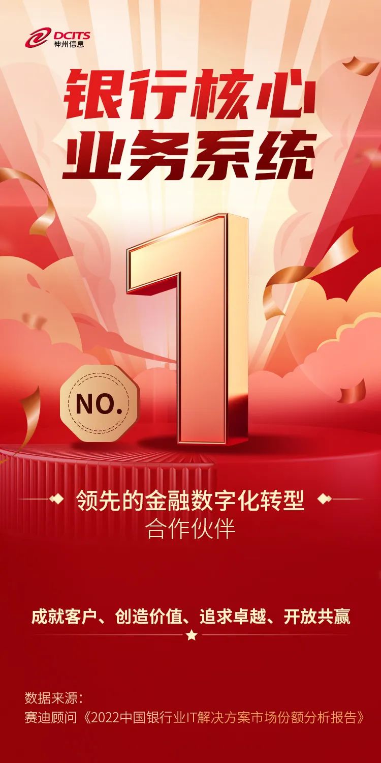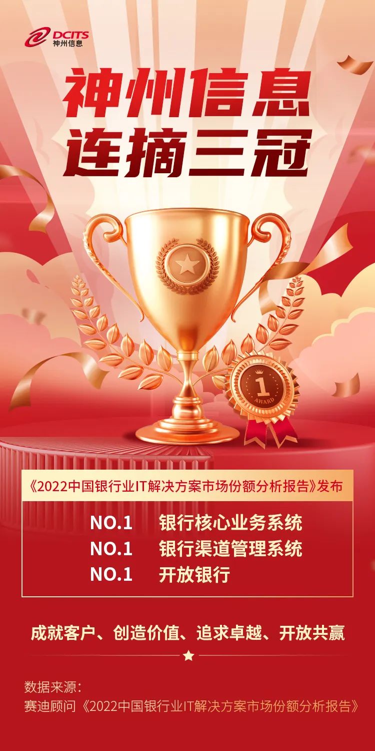 7月12日,工信部下屬咨詢機構——賽迪顧問正式發布《2022中國銀行業IT解決方案市場份額分析報告》,神州信息憑借雄厚的金融數字化實力再次摘得多項市場第一。