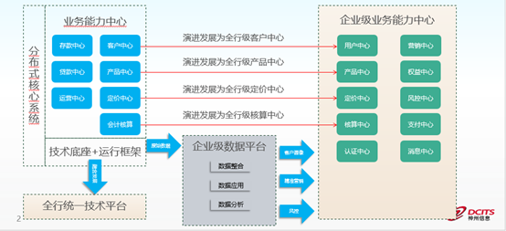 一是打破系統邊界,從單一的縱向能力支撐走向中臺化的能力橫向覆蓋。在企業級數據平臺支撐下,真正形成覆蓋全行業務系統的能力中心。
