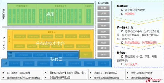 二是實現技術能力的內聚。在“無核化”理念下,進一步實現核心能力的剝離和重塑,最終將通用性技術能力內聚為全行級的統一技術平臺,實現通用能力的復用,有效支撐上層業務創新和發揮底層云算力的釋放。
