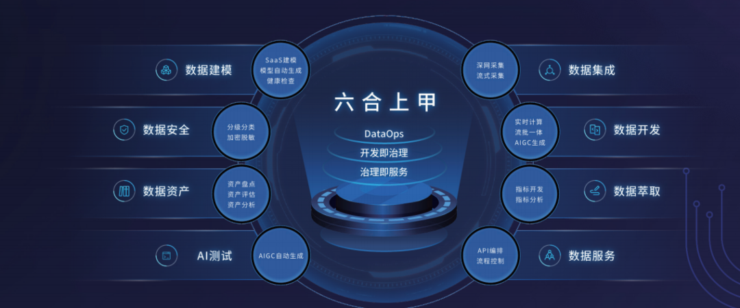 六合上甲一體化數據開發平臺,融合了數據建模工具、數據治理平臺、數據安全工具、數據資產運營平臺、數據交換平臺和數據服務平臺等平臺的基礎功能,形成一種可合可分的靈活應用模式,適用于各類不同客戶應用場景。