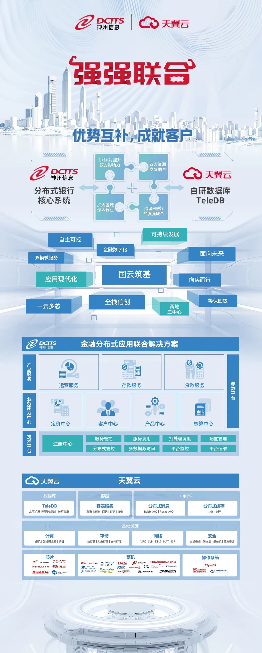 近日,神州信息與天翼云宣布,成功完成神州信息銀行分布式核心系統(tǒng)與天翼云4.0云平臺(tái)及天翼云TeleDB數(shù)據(jù)庫(kù)的適配認(rèn)證工作,標(biāo)志著雙方聯(lián)合推出的“銀行核心業(yè)務(wù)系統(tǒng)聯(lián)合解決方案”生產(chǎn)環(huán)境投產(chǎn)成功。