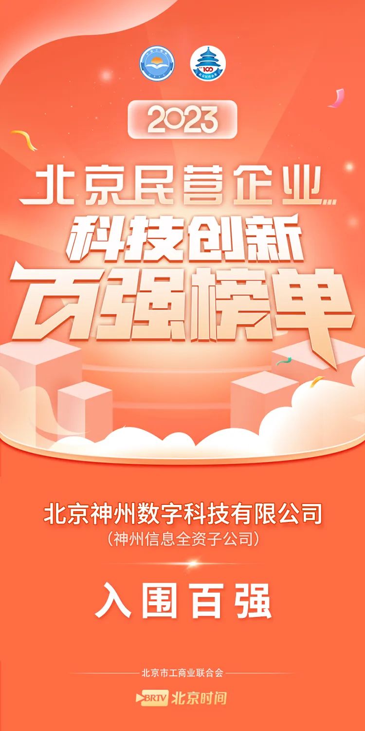 在“2023年北京民營企業科技創新百強榜”中,神州信息旗下“北京神州數字科技有限公司”首次入選。