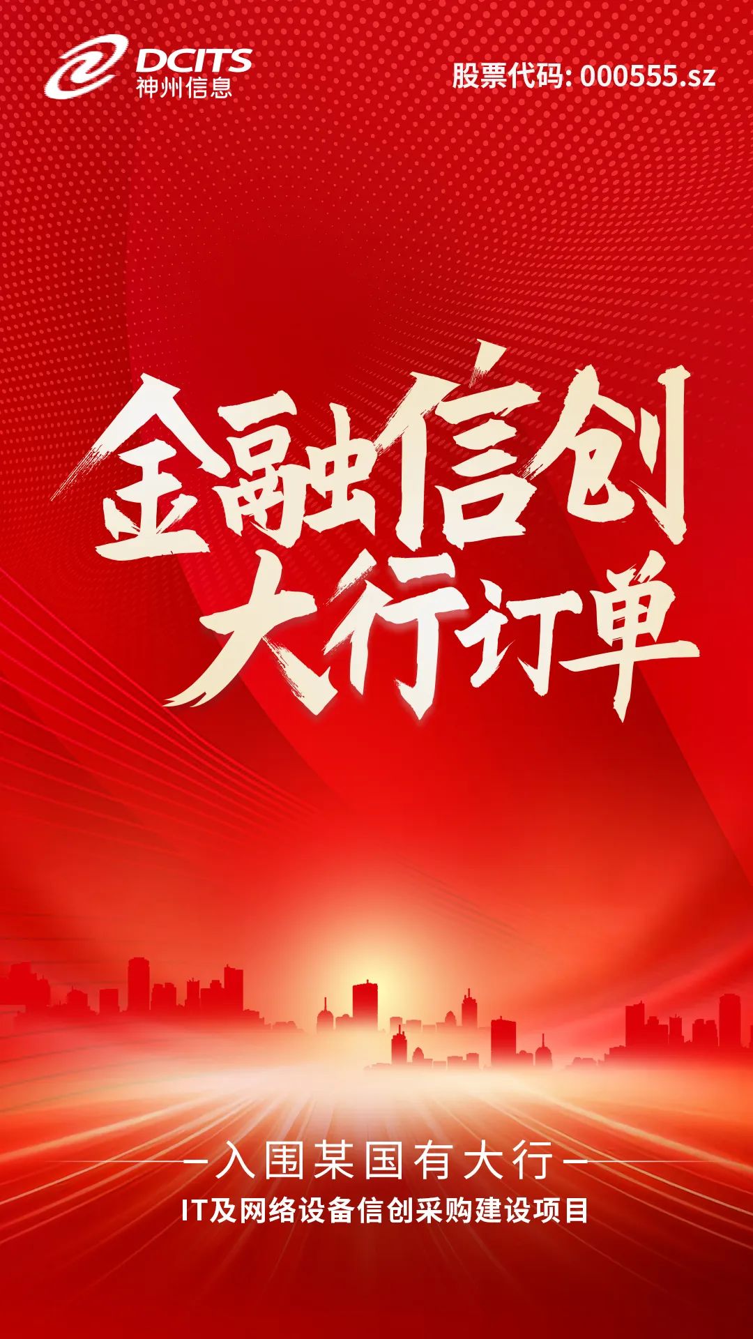 近日,神州信息繼入圍某股份制銀行近65億信創項目大單后,再次入圍某國有大行IT及網絡設備信創采購建設項目。