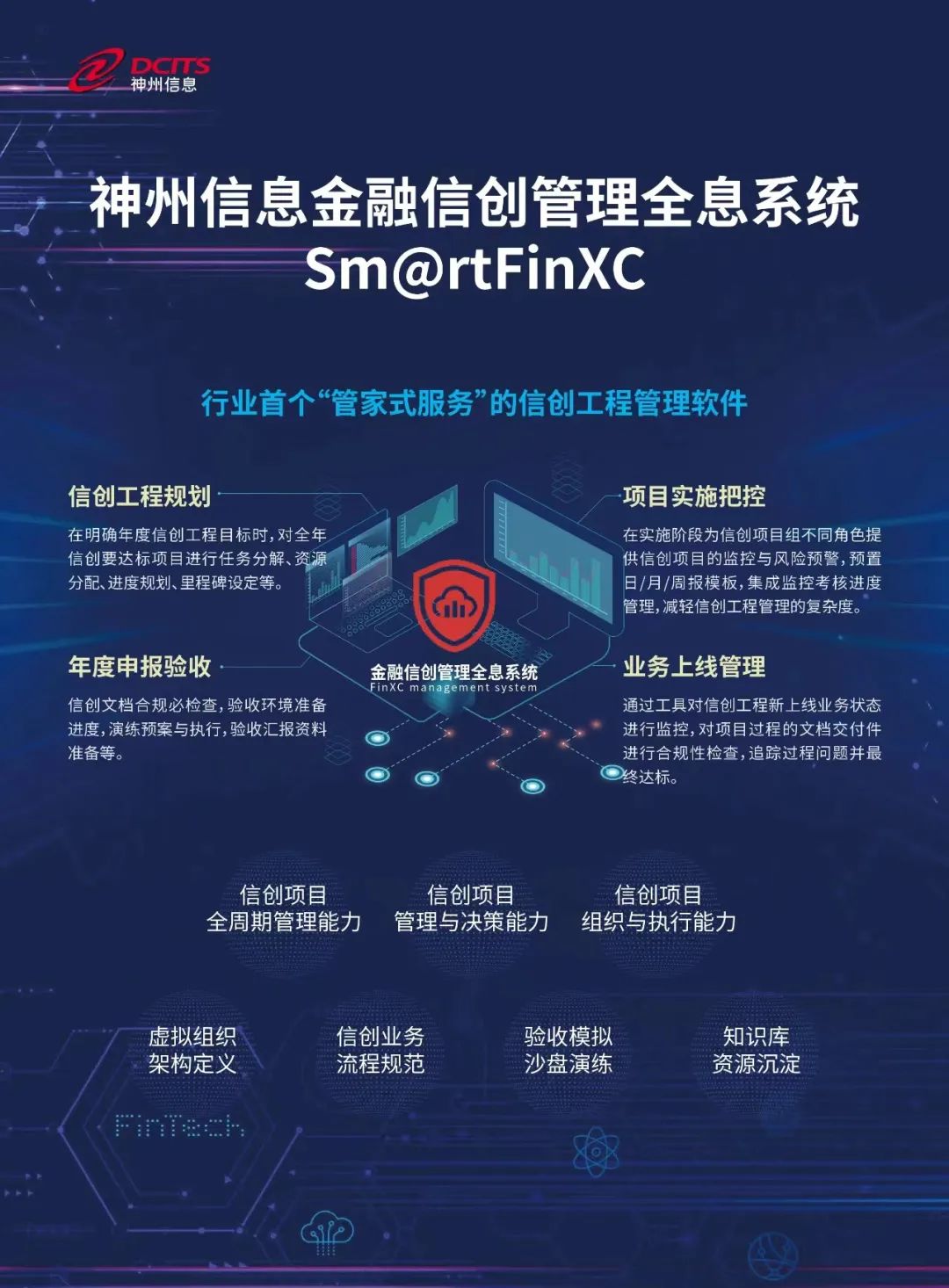 神州信息推出的金融信創(chuàng)管理全息系統(tǒng)(Sm@rtFinXC)榮獲第三屆(2023)“金信通”金融科技創(chuàng)新應(yīng)用卓越案例。金融信創(chuàng)管理全息系統(tǒng)依托神州信息金融信創(chuàng)專業(yè)化管理能力與交付經(jīng)驗,將金融信創(chuàng)的三大管理要素(項目管理、工程管理、考核點管理)與人員組織架構(gòu)結(jié)合,通過預(yù)定義的協(xié)同工作流程,圍繞信創(chuàng)年度建設(shè)目標(biāo)打造全年的信創(chuàng)“作戰(zhàn)圖”,實現(xiàn)信創(chuàng)項目的全生命周期管理。為金融客戶提供信創(chuàng)工程的“管家式服務(wù)”。