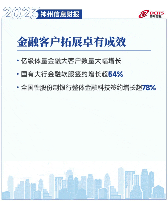 2023年,神州信息核心大客戶數(shù)量穩(wěn)步增長(zhǎng),重點(diǎn)區(qū)域新客戶擴(kuò)展穩(wěn)步增長(zhǎng)。其中,國(guó)有大行金融軟服簽約增長(zhǎng)超54%;全國(guó)性股份制銀行整體金融科技簽約增長(zhǎng)超78%。
