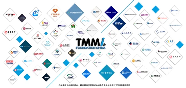 TMMi基金會中國分會成立于2017年,成立以來始終致力推廣TMMi,讓更多企業以更低的成本獲取世界最先進的知識理論和已經被證明的實踐。TMMi在中國蓬勃發展,越來越多不同領域的企業參與并通過了TMMi等級認證,目前在大中華區域內,工商銀行、交通銀行、建信金科、中國農業銀行、中國郵儲銀行、銀聯商務、深圳證券交易所、中國太平洋保險、泰康保險、泰康人壽、北汽新能源、紫光展銳等不同行業的多家知名企業通過了TMMi各等級認證。