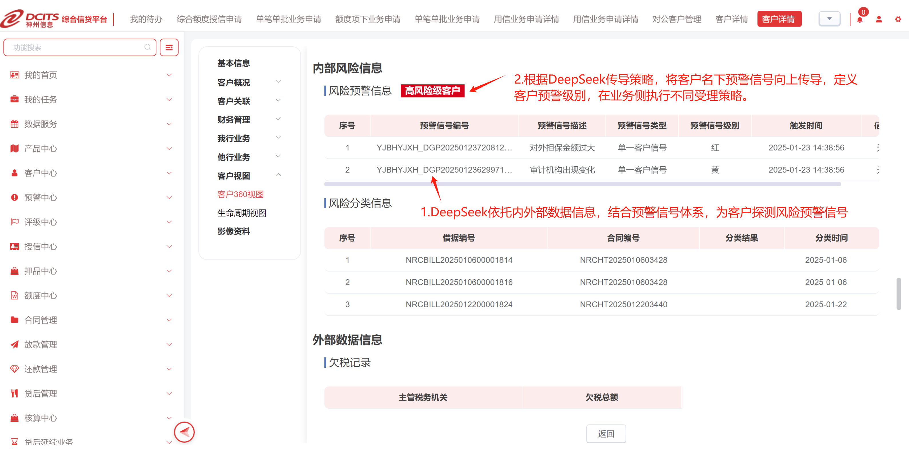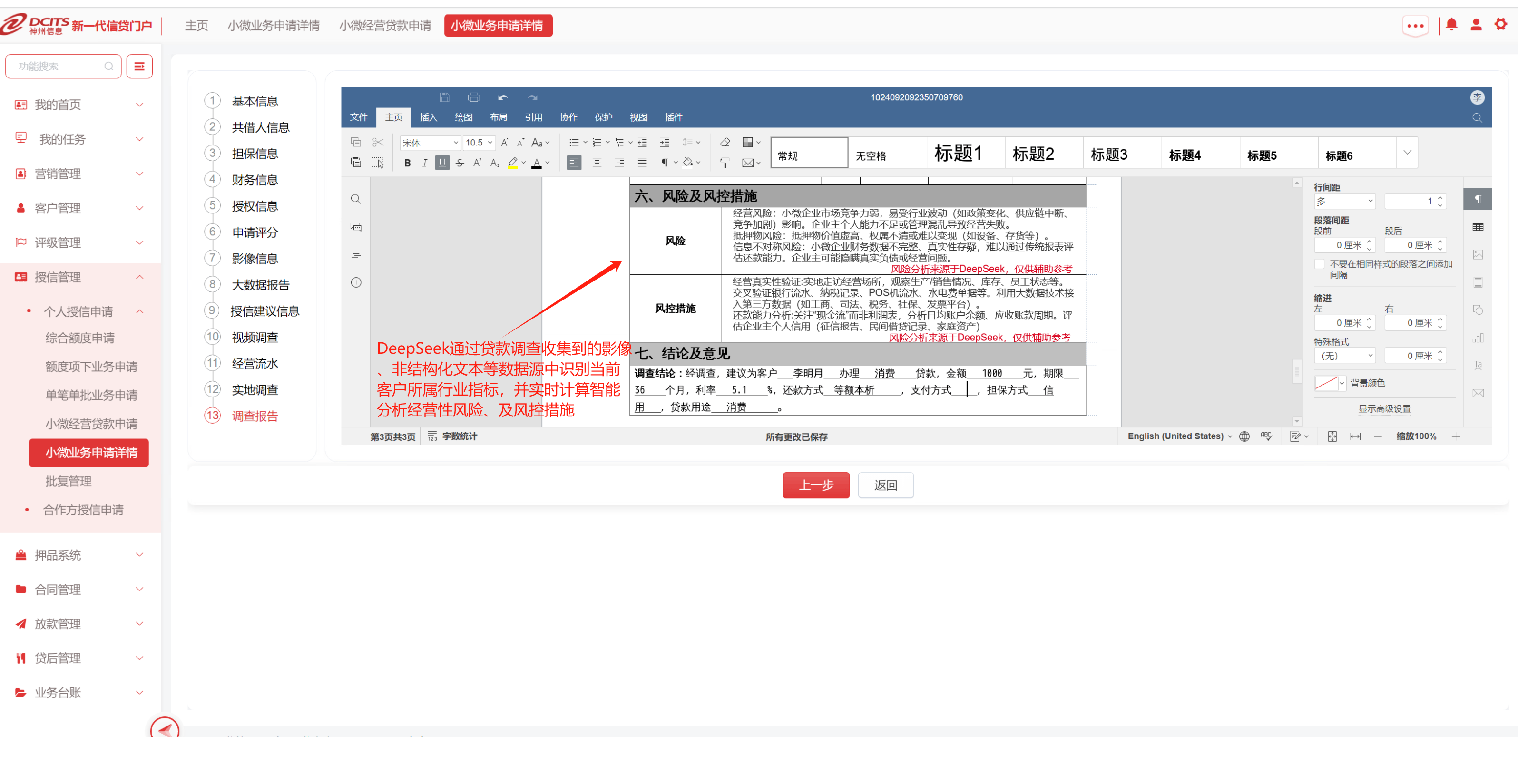 神州信息通過接入國產開源大模型DeepSeek,成功研發“智能綜合信貸系統”。該系統依托DeepSeek大模型的強大能力,實現了多模態解析、動態建模與實時預警等能力提升,從而對信貸業務全流程進行精準決策與效率躍升。在具體應用中,系統重點聚焦于“非標數據轉化、供應鏈交易驗證、軟信息量化、行業風險監控、客戶畫像精準營銷”五大場景,并在這些領域實現了突破性進展。